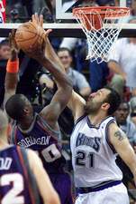 Drugi meč ovih rivala ni po čemu nije ličio na njihov sudar od pre tri dana. Već posle prvog poluvremena bilo je izvesno da će Sakramento izjednačiti rezultat, jer je na odmor otišao sa prednošću od 20 poena. Poigravanje sa rivalom nastavljeno je i u trećem periodu, posle kojeg su "kraljevi" stekli "višak" od 32 koša. Takvo kretanje rezultata lako je razumeti ako se pogleda samo jedan parametar. U prvom susretu, naime, procenat šuta Sakramenta iznosio je 35 odsto, a u prve tri četvrtine današnjeg duela, čak 75 odsto. U "razbijanju" odbrane Feniksa prednjačio je Stojaković, koji je sa 22 poena bio prvi strelac utakmice. Stojaković je bio veoma aktivan i u defanzivnim zadacima, uhvativši šest lopti. Drugi strelac Sakramenta bio je Veber sa 19 koševa. Njegova statistika obogaćena je sa još devet skokova, pet asistencija, dve "rampe" i tri ukradene lopte. Divac je susret odigrao na uobičajenom nivou. Uz deset koševa, imao je osam skokova, tri asistencije i dve "rampe". Jedina svetla tačka u poraženom timu bio je Toni Delk koji je utakmicu završio sa 14 poena. Treća utakmica dva tima igra se u nedelju, a domaćin je Feniks. Ranije vesti